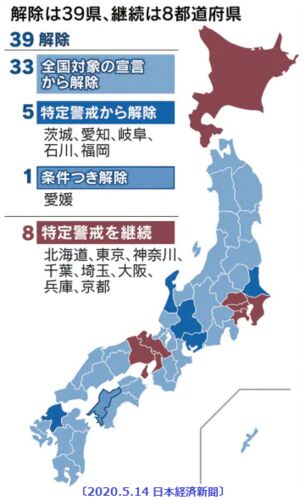 きょう2020年5月じゅうよっか、安倍晋三総理大臣が、わが愛知県をふくむ39県の緊急事態宣言を解除した。2020年4月とおか、愛知県が独自に緊急事態宣言を発令してから34日。2020年4月16日に緊急事態宣言を全国に拡大してから28日。 ただ、解除ってっても、「…